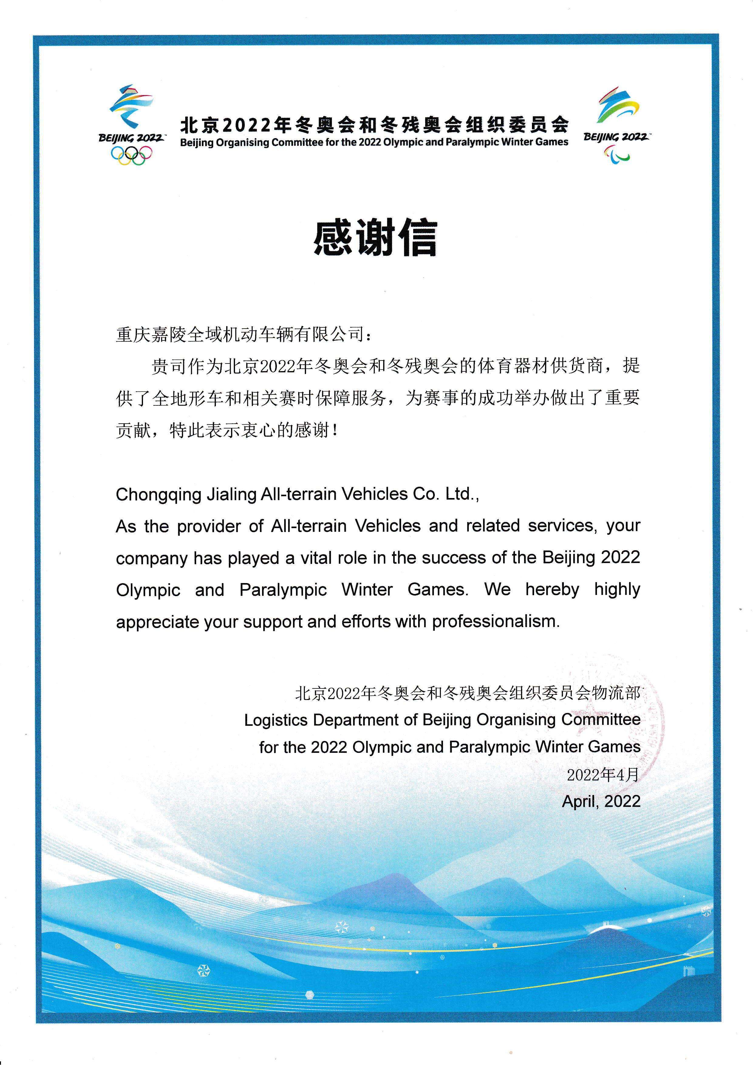 After 2000, the company embarked on the research and development, production and sales of all-terrain vehicles. In 2006, the first large-displacement motorcycle produced and launched in China. In 2010, the world's first hydraulic mechanical stepless dual-flow transmission amphibious vehicle was launched. In 2011, the first large-displacement snowmobile in China was launched. The diesel version of the UTV was launched in 2018. In 2020, the world's first hybrid amphibious all-terrain vehicle was launched. In 2022, the company's ATV, UTV and bobsleigh services were the sole all-terrain vehicle suppliers for the Beijing Winter Olympics, earning high praise from the Organizing Committee.